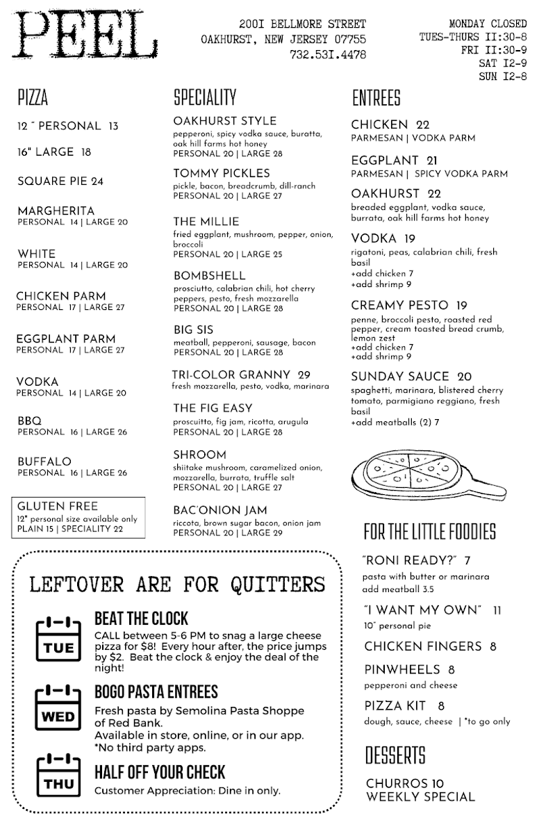 Welcome to PEEL - Oakhurst, a culinary gem located at 2001 Bellmore St Ste B, Oakhurst, NJ. This trendy spot seamlessly blends a modern ambiance with a delectable menu that showcases both classic and creative dishes.